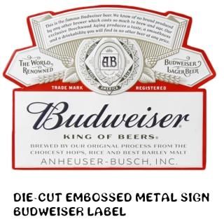 ダイカットエンボスメタルサイン BUDWEISER LABEL バドワイザー 輸入雑貨/海外雑貨/直輸入/アメリカ雑貨