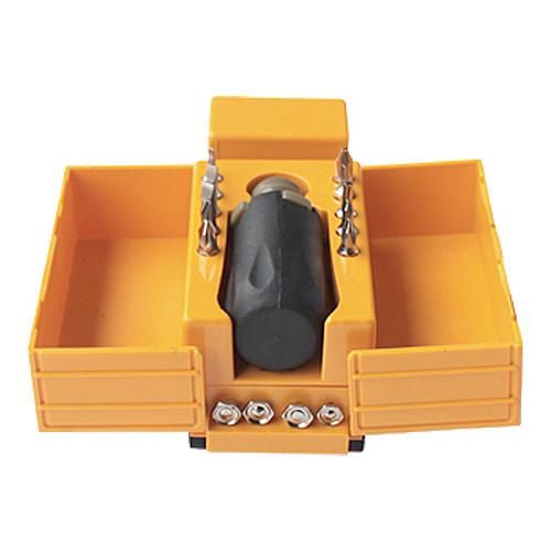 中を開ければ先端が選べるドライバー、また細かいサイズの作業に精密ドライバーと、
