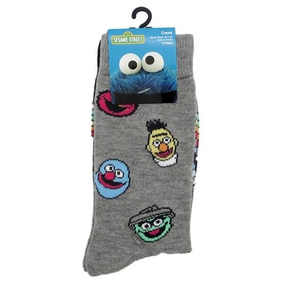 セサミストリートのキャラクターがデザインされたソックスが2足セットになっています。
